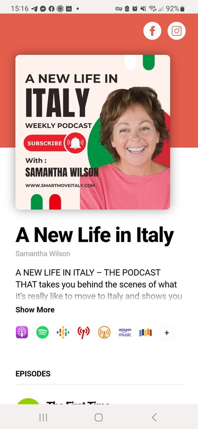 Join me for a mix of interviews, reviews, mythbusting, listerner Q&A's and more as I expose what its really like to live in Italy.